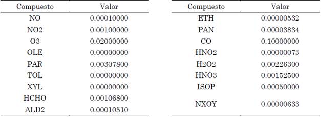 Las condiciones iniciales para el modelo fueron las sugeridas por Christopher Emery de ENVIRON [12] y se presentan en la Tabla 1.