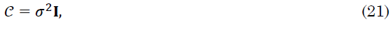 Teniendo en cuenta estas características en la matriz de covarianza, es posible calcularla con (21) como se presenta a continuación: