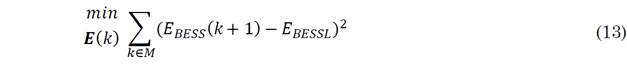 In (13), E BESS is the BESS capacity (energy) and E BESSL is the ideal BESS capacity. This problem is constrained to meet power balance equations, BESS and PV power limits, BESS SOC limits, and the PV units number limit.
