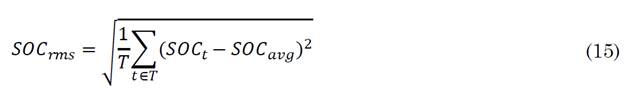 Where f t - f res represents the frequency deviation at time t, SOC t the state of charge in time t and SOC avg the average SOC in period T.
