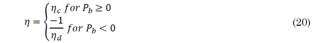 Besides power balance, the problem is also constrained by the maximum power (for discharge and charge), the SOC and the efficiencies in BESS.
