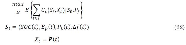 The optimization is later reformulated including a stochastic sequential decision process for intra-day operation strategy. The objective function is then defined in (22) to maximize the expected benefits after deciding based on initial states.