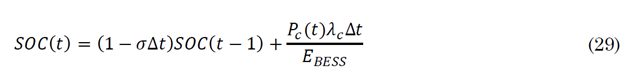 The terms P BESS-D (t) and P BESS-C (t) correspond to the power during discharge and charge in BESS.
