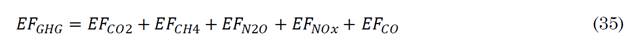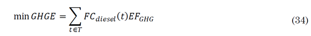 The GHGE objective depends on the fuel consumption of the diesel machine and the emission factor for each Greenhouse Gas.