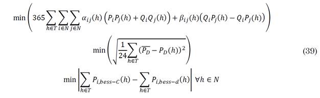 Where (P ̅ D) and PD(h) are the mean demand and the actual demand at h th hour. P i,bess-C (h) and P i,bess-C (h) represent the BESS charging and discharging power in the node i and hour h respectively.