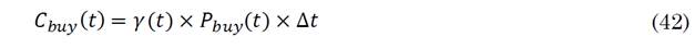 Where R(t) is the revenue, C buy the cost of purchasing energy, and C BESS_Day is the cost for BESS degradation in a day, as it is shown in (41) and (42) respectively.