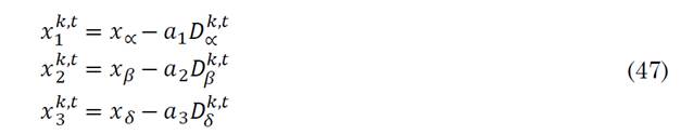 Then three positions are defined based on D k ∝, D k β, D k δ as in (47).