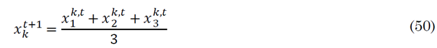 Where r 1 and r 2 are vectors between zero and one and a is vector linearly decreasing from two to zero during iterations. Then the position of the omega solutions is updated as in (50) by averaging the positions mentioned in (47).