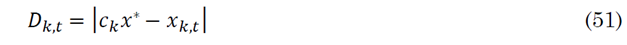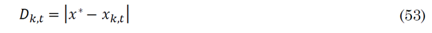 If the agent is to search for the prey, then the position of the agent is updated calculating the distance to another agent selected randomly, as in (53). The new position is described in (54).