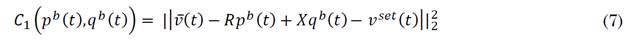 This objective is composed of two cost functions C 1 correspond to the voltage tracking strategy in interfacing TN-DN nodes, formulated as a squared 2-norm in (7), while C 2 represents a cost function for BESS dispatch in (8).