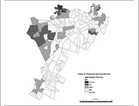Junto a la marginación en la ciudad de Pachuca se encuentra la Vulnerabilidad Social Urbana (VSU), que significa la capacidad que tiene una población para poder restaurar su condición después de sufrir algún suceso crítico (Escalona, 2013). Esta apuntala las limitaciones y condiciones en las que se da la expansión urbana por la residencia de población migrante indígena, lo que determina que las condiciones de los espacios de la primer periferia urbana no son consideradas para los migrantes, y se convierten entonces en los sujetos activos de la expansión urbana, que logra interpretarse como metropolización en condiciones que significan un impacto directo en las zonas de expansión y en el proceso de urbanización (figura 12).