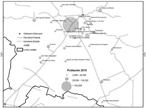 La ZMP ha favorecido un proceso de conurbación y metropolización. Gracias al papel administrativo y comercial, además del poblacional, se ha creado un sistema urbano (figura 4) de 28 localidades, de las cuales doce (en el 2010) dejaron de ser rurales y se integraron a la ZMP.