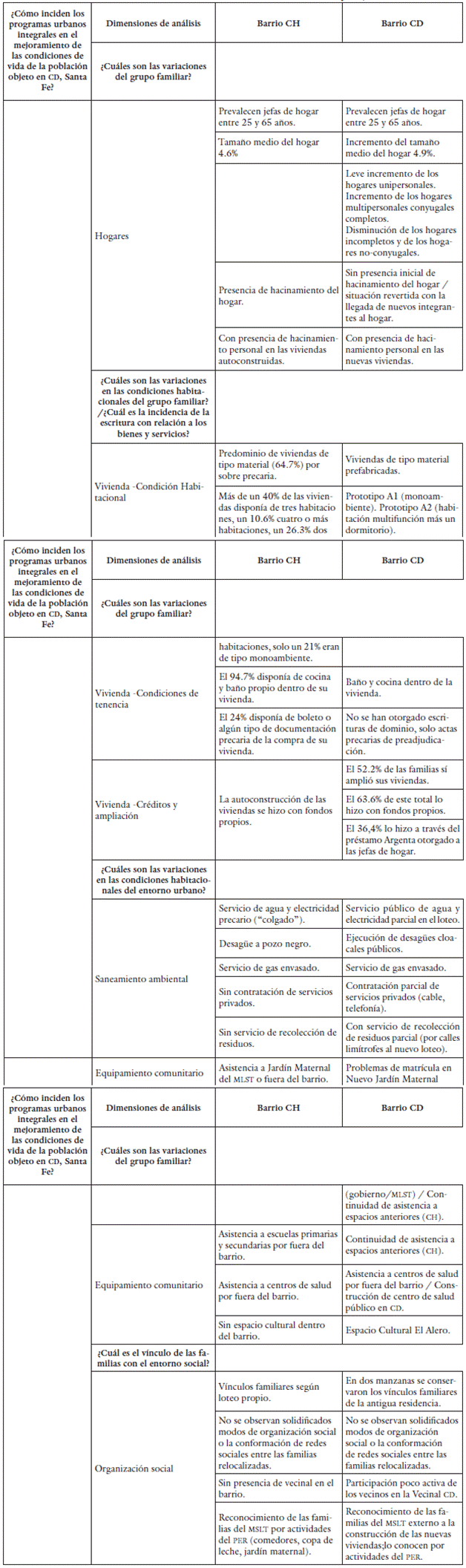 Tabla 5 Síntesis de las variaciones detectadas en barrio CH y CD, Santa Fe