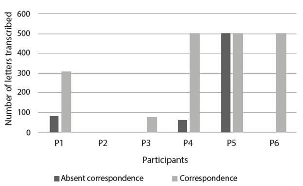 When the participant chose the first option, a slide appeared which indicated that the activity had finished and then the participant left the classroom; but if the participant chose the second option, a slide repeated the instruction about the transcription of the letters.