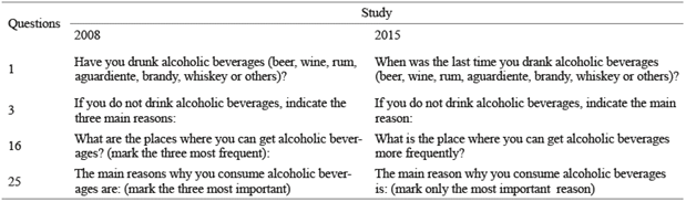 The Second Study of Alcohol Consumption in Minors, completed in December 2015 (Pérez-Gómez, Mejía-Trujillo, Reyes-Rodríguez & Cardozo-Macías, 2015), sought to ex amine whether changes had occurred in those seven years, and what type they were. The comparison was possible and relevant because an identical methodology was used in the two studies, and data were collected in the same cities.
