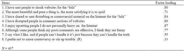 To explore the factor structure and internal reliability of the revised Trolling Questionnaire (R-GAIT).