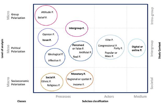 The polysemy and complexity of polarization make it difficult to adopt a single definition. However, after reviewing the literature, we consider polarization to be a cross-cutting phenomenon that is subdivided according to different contexts and levels of analysis.