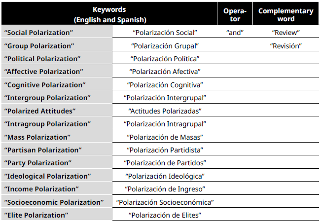 Articles that focused on polarization as the central axis of the review. Those in which this concept was an additional or secondary variable were rejected.