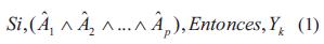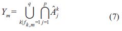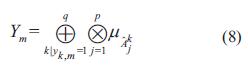 Para un sistema de w funciones de activación, p conjuntos, q posibles implicaciones, siendo Ym la m -ésima salida de activación y µAˆkj la j -ésima función de pertenencia de la k -ésima implicación, el proceso de inferencia de Ym, considerando conjuntos booleanos o difusos, se puede expresar como se muestra en la Ec. (7):