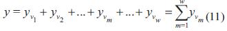 donde yvmesta dado por la Ec. (10). El término de salida virtual fue concebido bajo una correspondencia física real en aplicaciones de control, para la salida total del sistema de inferencia. A manera de ilustración del concepto de salida virtual, se puede observar la acción que tiene una válvula de 3" para el llenado de un tanque; en este caso el flujo permitido por la válvula se puede considerar como el aporte que darían tres válvulas virtuales (que tienen una existencia aparente y no real) de diferente diámetro que dan lugar a los actuadores virtuales: