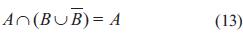 En este caso, la intersección de los n términos formados por la unión de una variable y su complemento generan la unión de 2n intersecciones producidas al aplicar la propiedad distributiva de la intersección Booleana sobre la unión Booleana, siendo las variables simplificadas las presentes en el anterior proceso. La respectiva restricción que se genera para esta simplificación es: