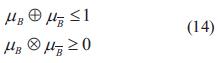 Con la finalidad de mejorar el desempeño del controlador Booleano se cambian los conjuntos Booleanos por difusos, de tal forma que se puedan tener transiciones suaves y monótonas entre regiones Booleanas. Debido a lo anterior es necesario definir las operaciones de intersección y unión para conjuntos difusos, las cuales son respectivamente: t-normas (⊗) y s-normas (⊕) [5], los anteriores operadores deben cumplir las siguientes propiedades: