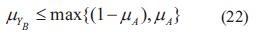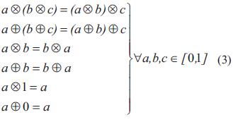 Lo cual es necesario para la simplificación de términos en álgebra Booleana, por lo tanto, al tener conjuntos difusos que cumplan con este requerimiento, es posible realizar la simplificación de términos bajo la metodología Booleana empleando conjuntos difusos. Es importante señalar que una t-norma y s-norma que permiten el cumplimiento de la anterior relación son el mínimo y el máximo respectivamente [2].