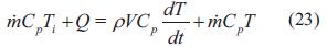 El calor específco del agua es 1cal/(o C . g) = 4.186,8J/(o C . Kg) y la respectiva densidad es, de 1.000 Kg/m3. El balance de energía del sistema es:
