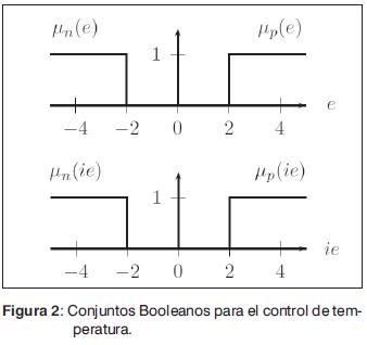 Los conjuntos involucrados en los universos de discurso que se consideran son: integral de error positivo µp(ie), integral de error negativo µn(ie), error positivo µp(e) y error negativo µn(e). En la Fig. 2 se presentan los conjuntos Booleanos.