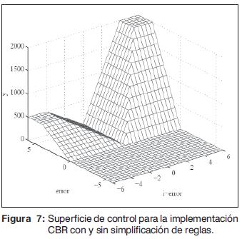 Los conjuntos difusos propuestos en la Fig. 6 cumplen las anteriores restricciones, por lo tanto la superficie de control con y sin simplificación de reglas es la misma, tal como se observa en Fig. 7.