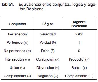 El concresor basado en relaciones Booleanas (CBR), busca emplear el proceso de diseño que tienen los sistemas basados en algebra Booleana para la implementación de controladores difusos. Como primer aspecto a considerar se tiene la relación (isomorfismo) [14], observada entre teoría de conjuntos, lógica y sistemas matemáticos (retículos y algebra Booleana) [15], algunas de las equivalencias más importantes de estos isomorfismos se pueden observar en la Tabla1.