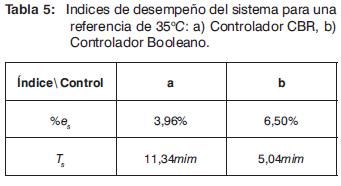 Considerando una referencia de 35°C, los índices de desempeño del sistema se pueden apreciar en la Tabla 5.