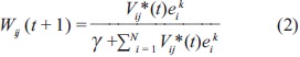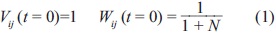 Para realizar a la adaptación de pesos a la matriz Wij se realizará a partir de los patrones de entrada representados por los vectores E, la adaptación se realiza mediante la expresión dada en la ecuación (4):