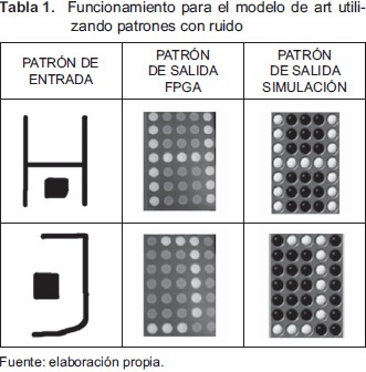 Utilizando el módulo de comunicación para presentarle diferentes patrones a la RNA implementada en la FPGA, los resultados que se obtienen se pueden ver en Tabla 1.