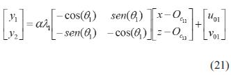 Para obtener un modelo que considere la información de ambas cámaras, basta combinar las ecuaciones (21) y (25). Como ya se mencionó, se necesita la tercia de coordenadas ( y1, y2, y3)