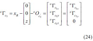 XR se obtiene como función de las coordenadas articulares (q) al aplicar la cinemática directa de un robot manipulador; además, también se requiere de la posición del efector final en el marco de referencia de imagen Σy dado, en las ecuaciones (17) y (18):