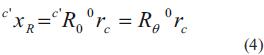 La matriz Rθ será constante, ya que el usuario situará el marco coordenado de la cámara rotado por un ángulo de valor θ con respecto al marco coordenado del robot, y una vez situados en una posición determinada ya no se cambiara la posición. La posición del efector final con respecto al marco de referencia de la cámara sin desplazar ΣC' está dada por la ecuación (4).