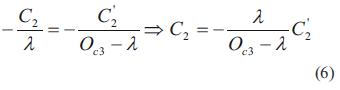 El plano C1 -C2 está localizado a una distancia OC3 del plano x -y , si se traslada el centro de la cámara al mismo plano donde se mueve el robot, desaparecen las coordenadas C3 y z y se obtiene la ecuación (2).