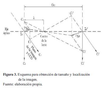 La figura 3 se utiliza para determinar el tamaño y la localización de la imagen y permite deducir las ecuaciones (5) y (6).