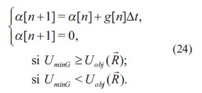El cálculo de α en tiempo discreto se realiza con la ecuación (24).