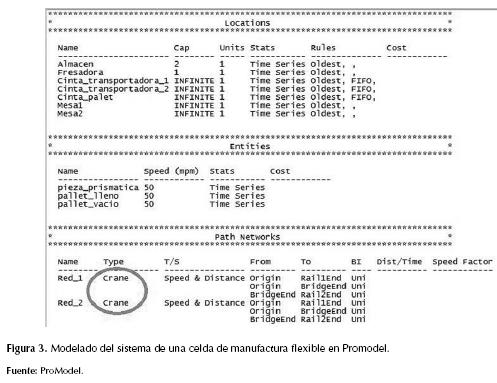 Productividad en una celda de manufactura flexible simulada en promodel utilizando path networks type crane