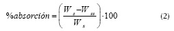 Ws = masa seca de la muestra previa a la inmersión (g).