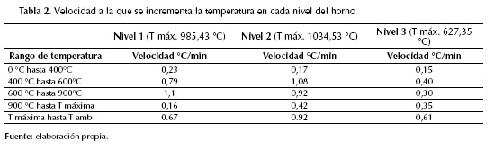 Perfiles de temperatura presentada en el horno