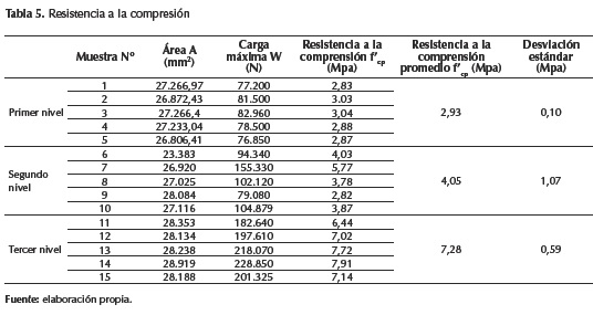 Según la tabla 5, las muestras ubicadas en el nivel 3 presentan mayor resistencia a la compresión.