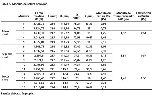 El módulo de rotura para cada muestra se determinó mediante la ecuación (4).