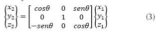 de θ: En la ecuación (3) se presenta el segundo giro en el eje y, y a partir del nuevo eje y