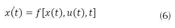 Llegados a este punto, ya está modelado por completo el sistema físico, si bien para continuar el análisis conviene expresar las ecuaciones (1) a (5) en una única expresión; estas se conocen como las ecuaciones de estados, muy utilizadas en teoría de control, que son un conjunto de ecuaciones diferenciales de primer orden. En su forma general las ecuaciones de estado del espacio de estados de cualquier sistema no lineal como se expresa en la ecuación (6).