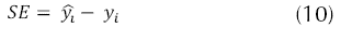 MAE determina la precisión general de la interpolación espacial, mientras RMSE es una métrica de error muy común para medir precisión de predicción, que da mayor peso a los valores extremos de los resultados; por su parte, MdPE fue utilizado en conjunto con MAE, como una métrica de error alternativa de precisión general de interpolación. En general, MdPE puede reducir el impacto que tienen los valores atípicos sobre la MAE; adicionalmente, se evaluó la diferencia entre valores interpolados y medidos en cada punto de muestreo, para esto, se calculó el error estadístico (SE) usando la ecuación (10).