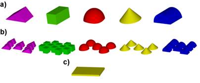 Figura 1 Configuraciones de estructuras a evaluar a) Geometrías básicas; b) Configuraciones grupales; c) Estructura flotante