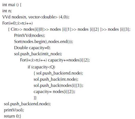 En el siguiente código 1 se presenta un extracto del código en C++ de la heurística de barrido: